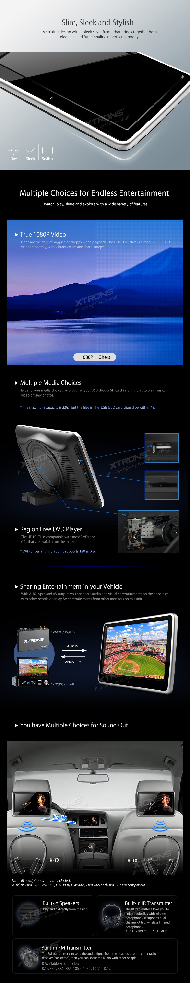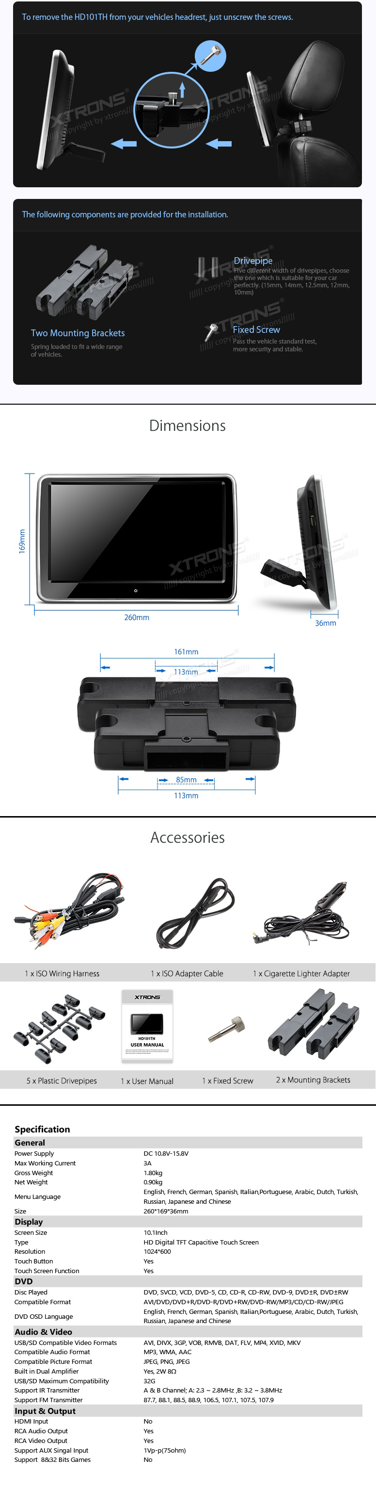 Enjoy the benefits offered by the headrest 10 “black touch screen XTRONS HD101TH